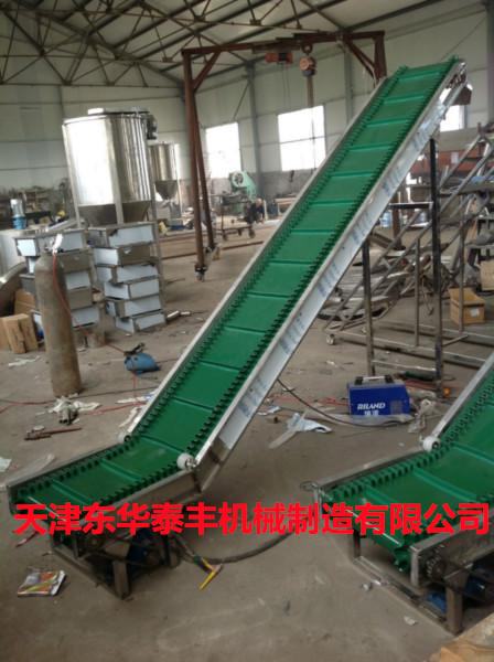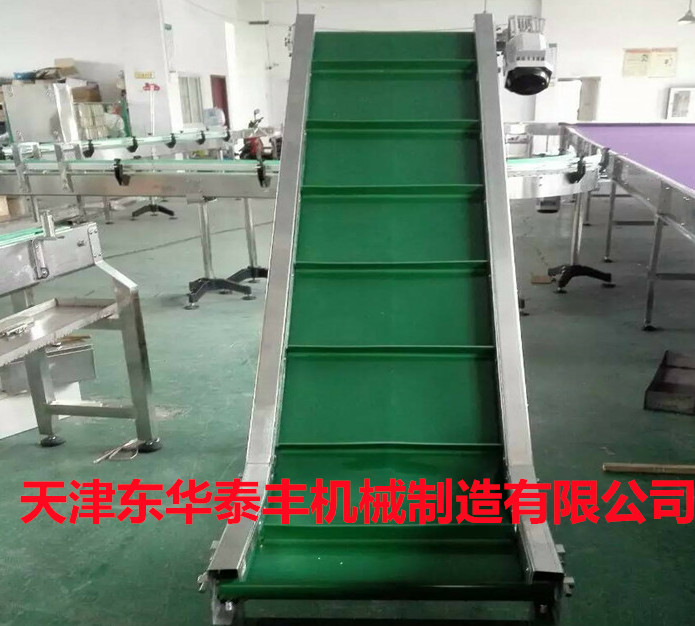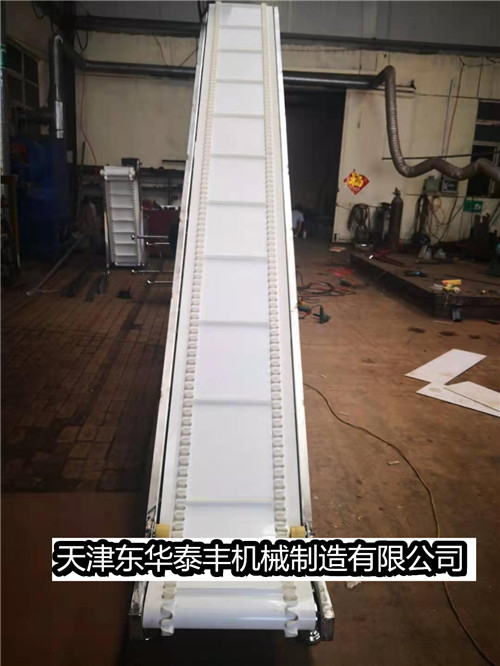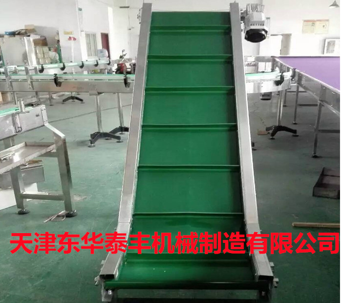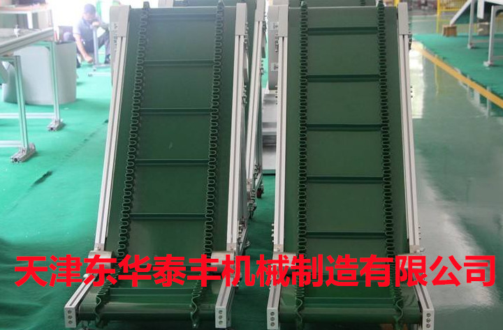 擋板輸送帶和高凸度的一字型花紋輸送帶原理相類似。它就是根據(jù)輸送帶的產(chǎn)品規(guī)格和功能需求,在合適的橫向剛性平面基帶上按照要求粘接橫向擋板的一種特殊加工輸送帶。它的構(gòu)成是體現(xiàn)在這三方面: