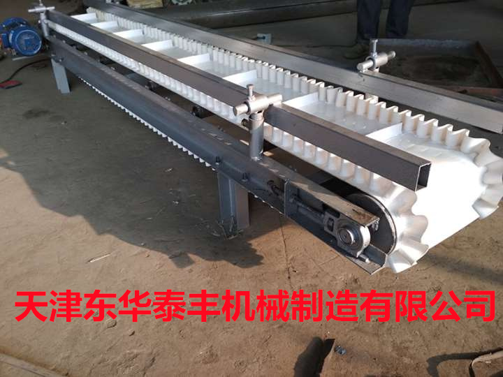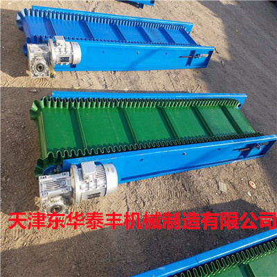 擋板輸送帶擁有水平輸送、傾角輸送、垂直輸送、定量包裝輸送等多種功能。主要用于散裝物料的輸送,包括煤、礦石、沙子、化肥、糧食、食品等。輸送的顆粒從粉末狀到400mm的大粒度皆可。根據(jù)輸送機的功率,擋板輸送帶的輸送量能達到1m3/h~6000m3/h。